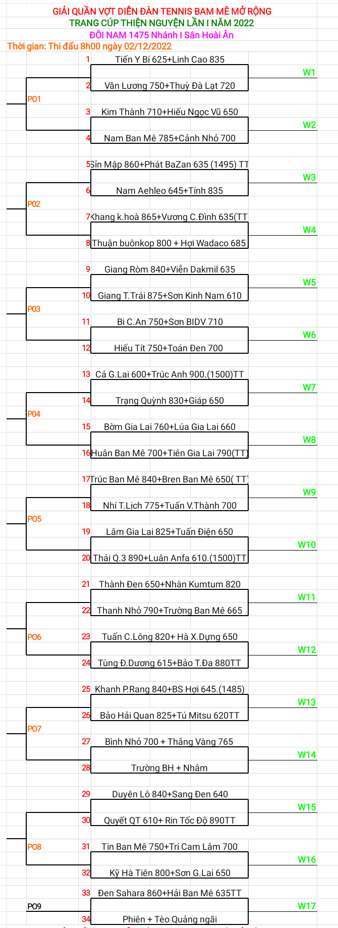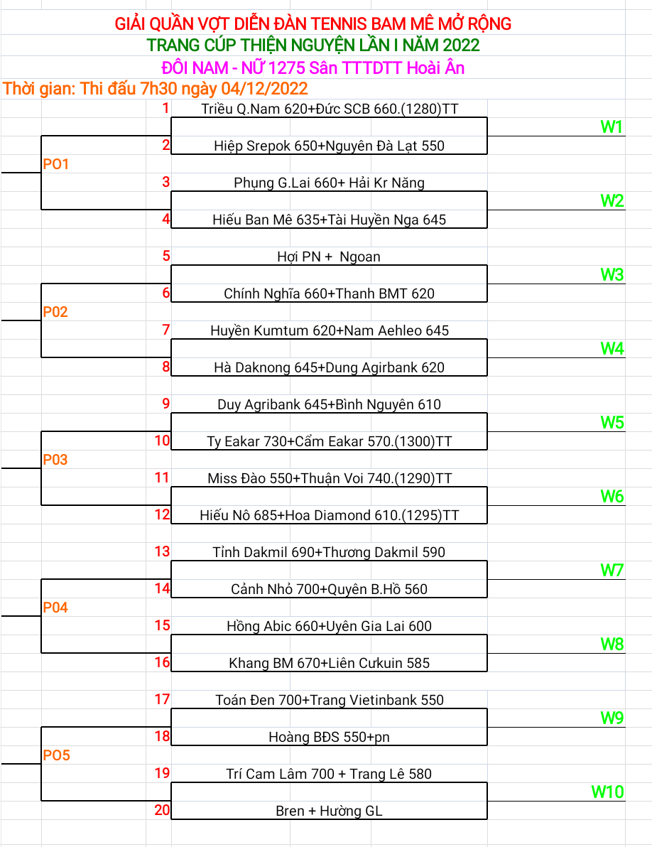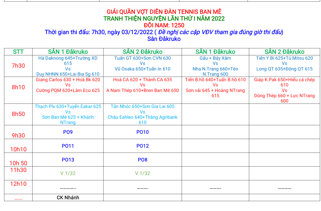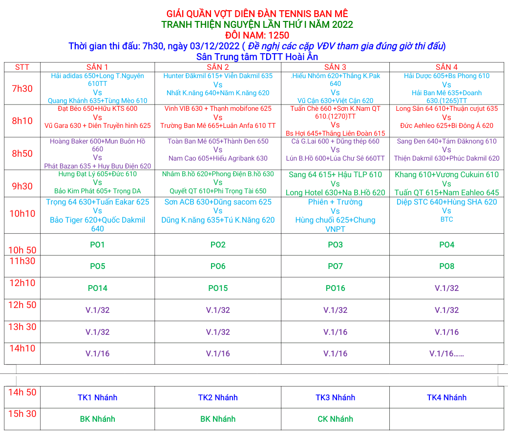 - Đôi nam: 1250 - 1475 - 1650