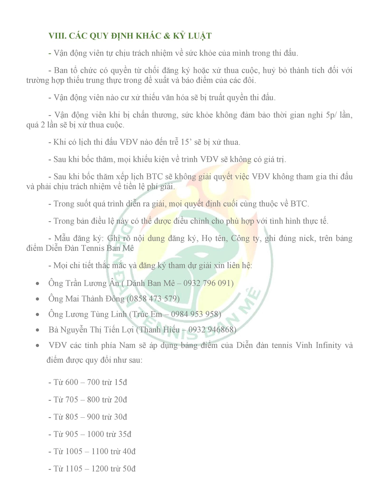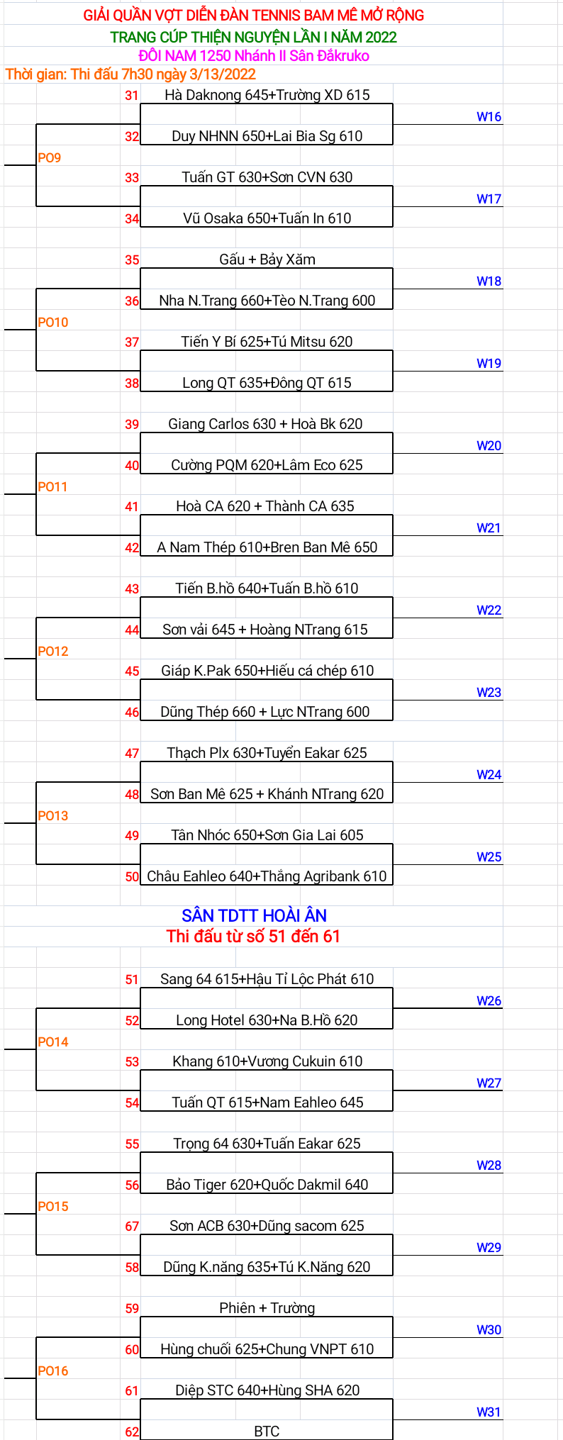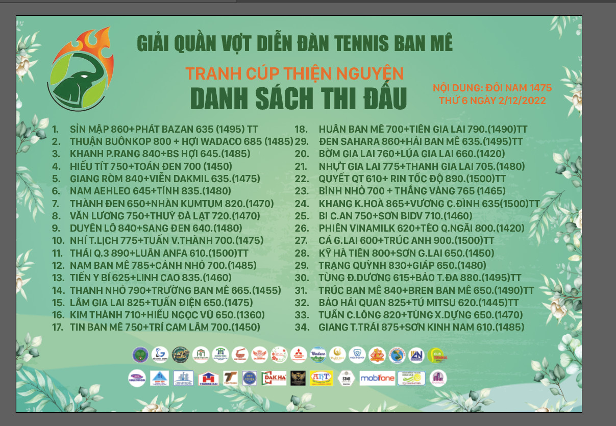 - Đôi nam: 1250 - 1475 - 1650