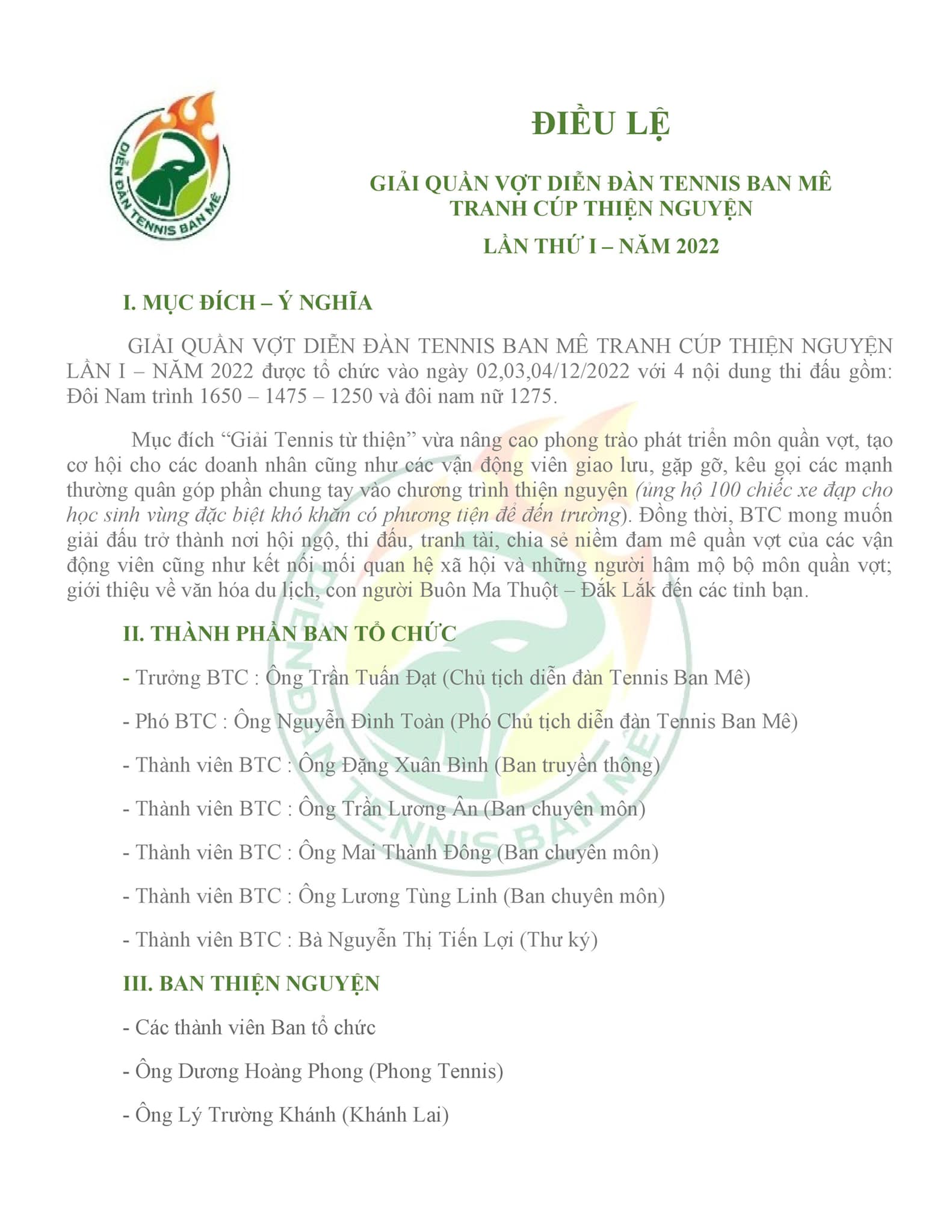 GIẢI QUẦN VỢT TRANH CÚP THIỆN NGUYỆN LẦN I – 2022