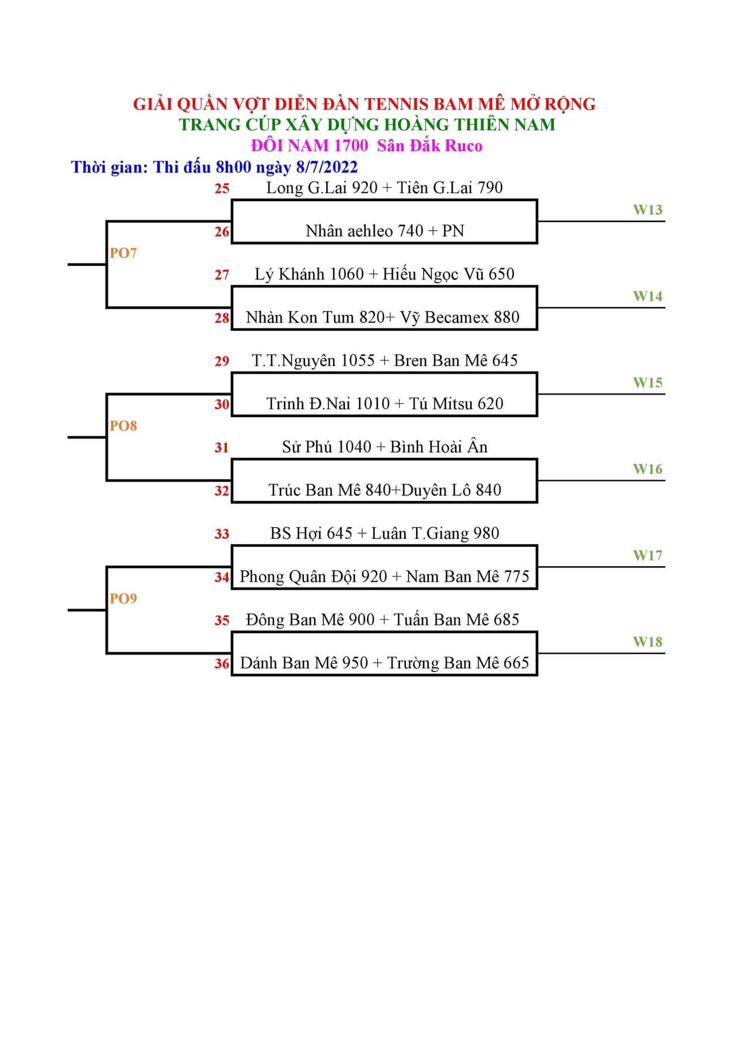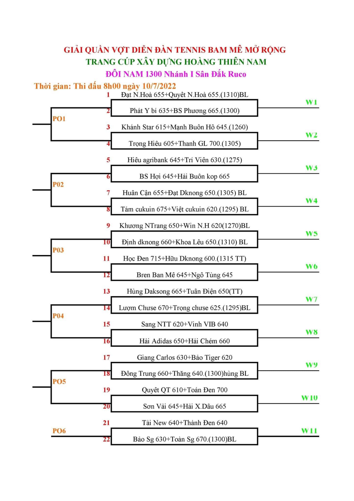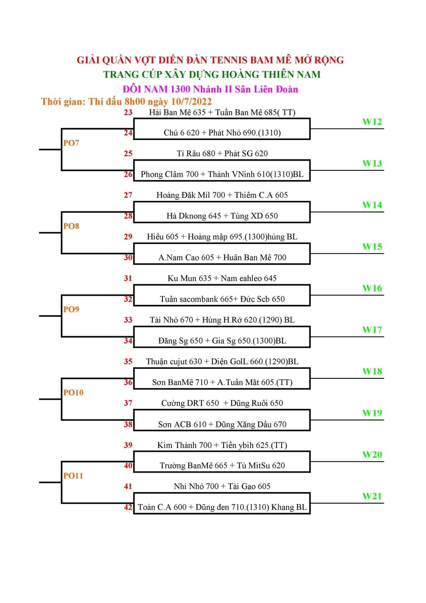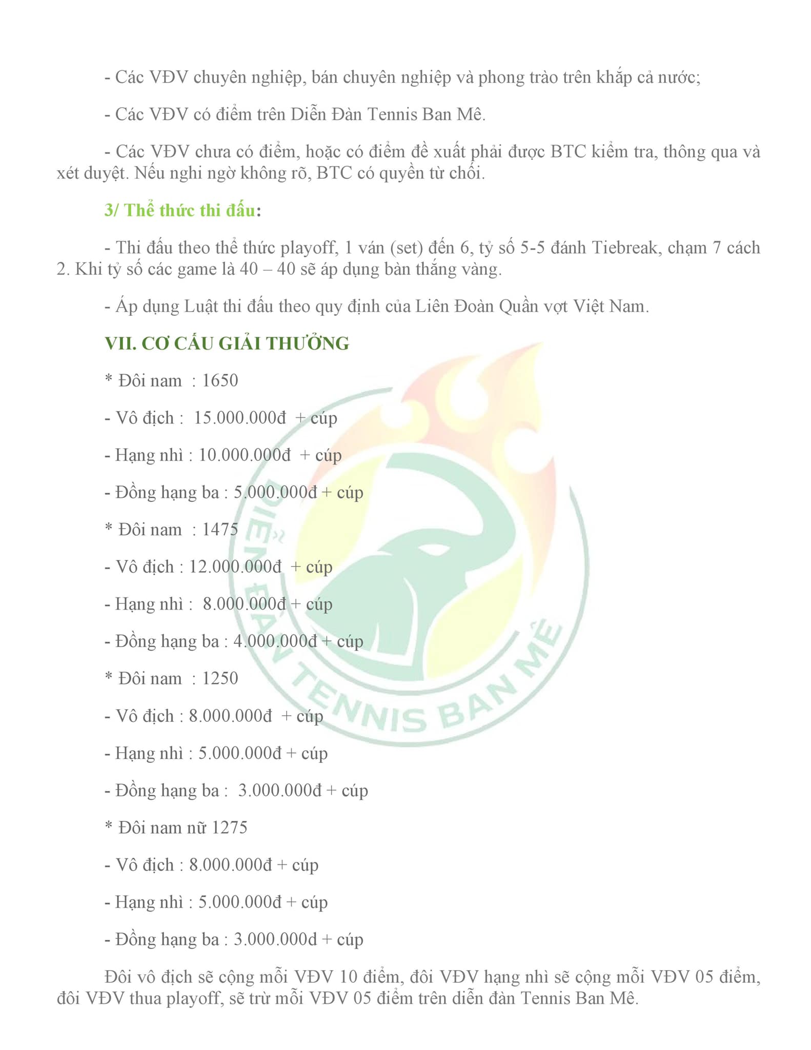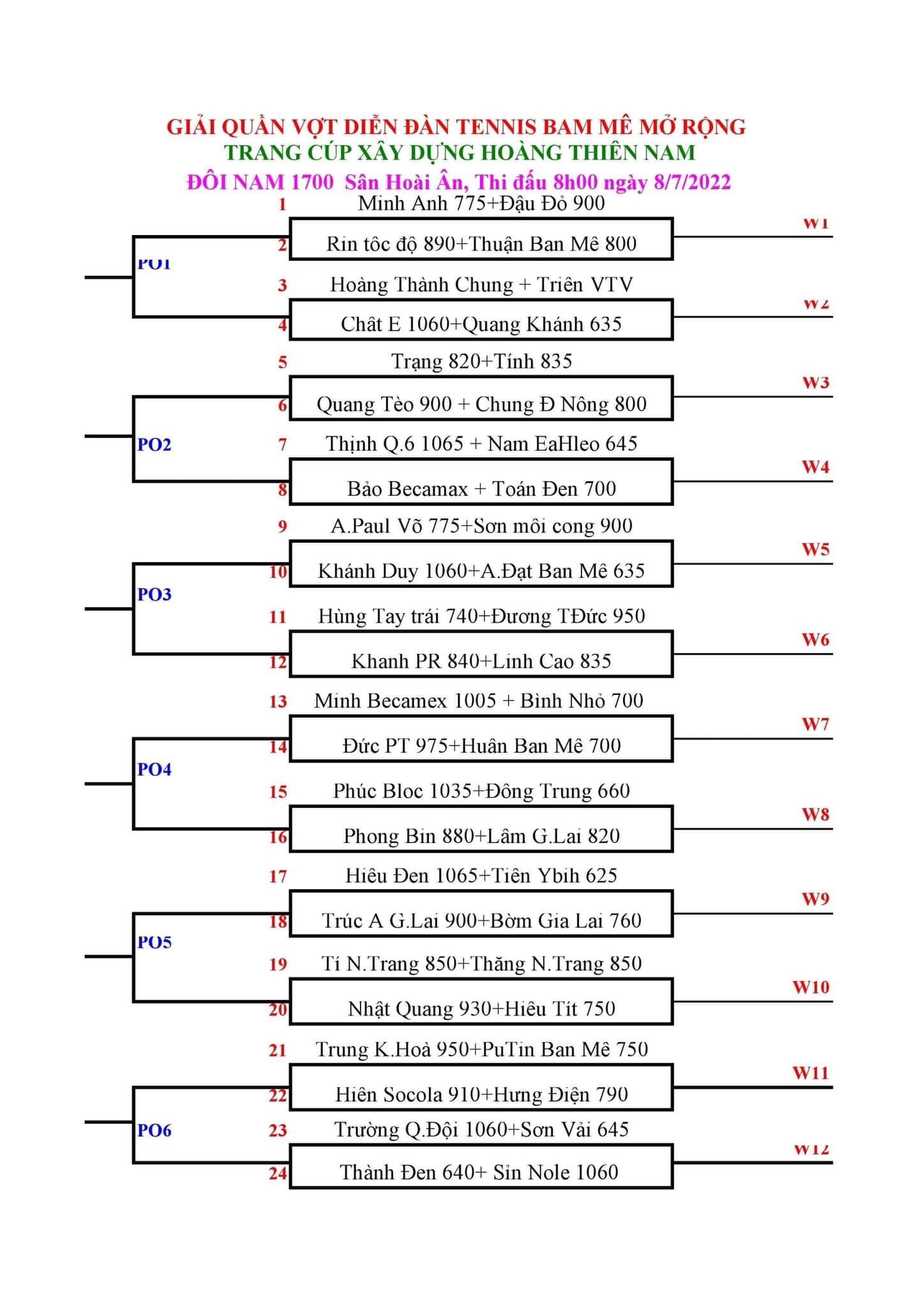 • Đôi nam : Trình 1300; 1450; 1700; và 2000.